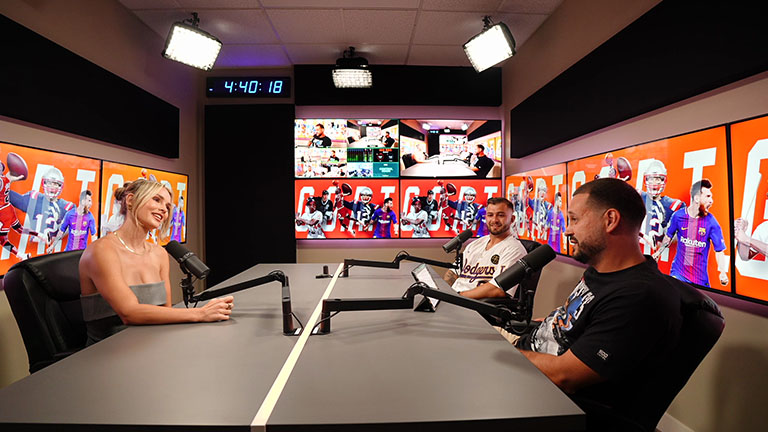 Our studio is equipped with Sony Cinema Line Cameras, Shure professional microphones, teleprompters, and industry-standard lights and production gear.